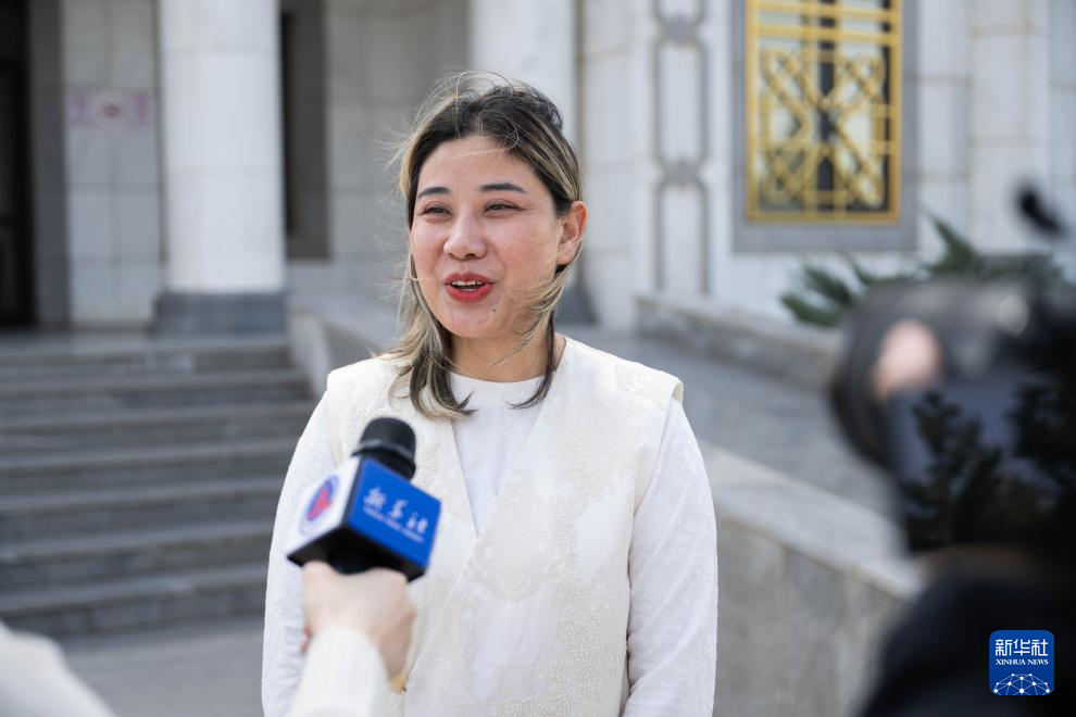 3月17日,在土库曼斯坦萨拉赫斯口岸,从伊朗撤离的中国公民马玉秀接受新华社记者采访。新华社记者 李任滋 摄